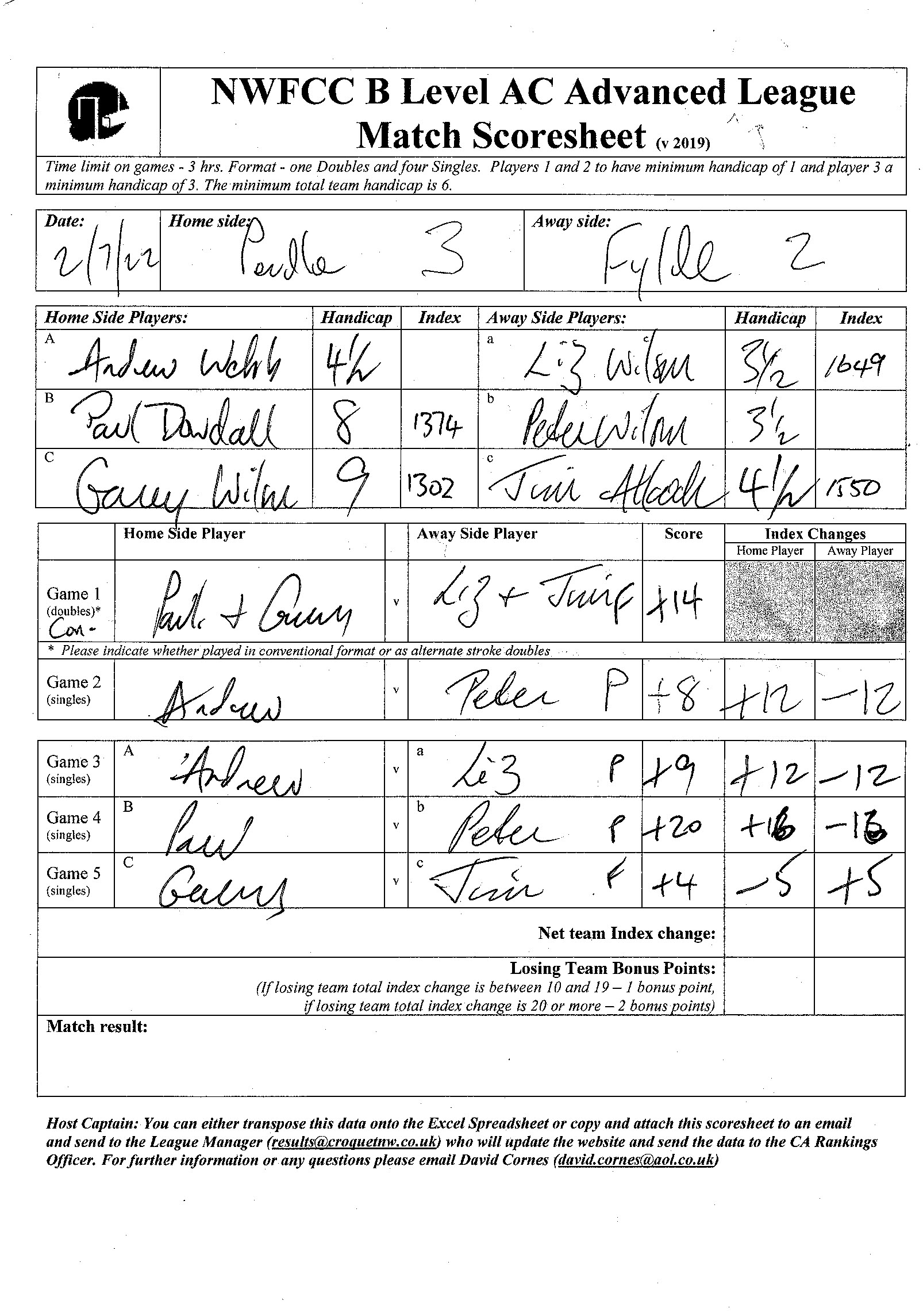 Liz & Jim beat Jim Wilson and Ivan Wheatley +3.