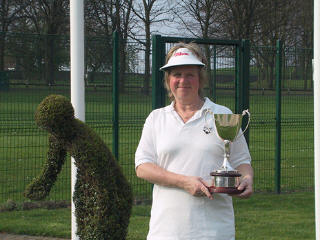 Liz Wilson pictured here with the Neil Williams Memorial trophy awarded to the B class Advanced Tournament Winner in its first year at Bury Croquet Club, Heaton Park