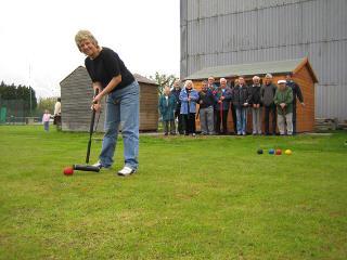 Everyone present insisted Liz should strike the first ball on our new lawns.