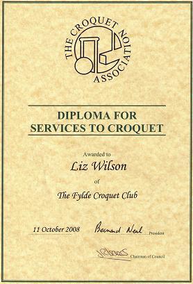 The Croquet Association honoured Liz's achievements by awarding her their diploma.