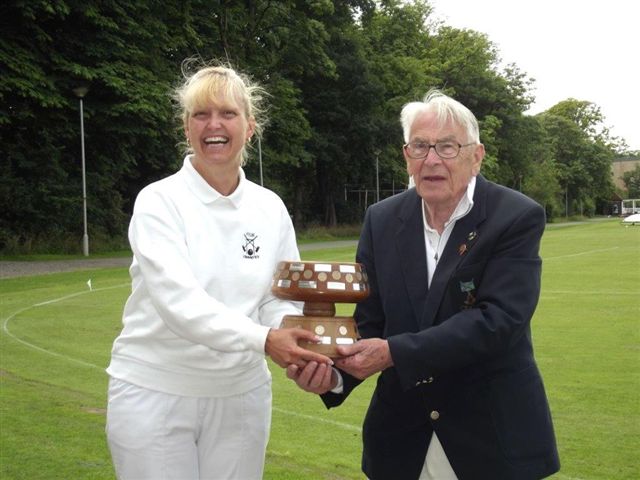 Betty won 8 out of 12 games. In the advances singles (with bisques) Betty got to the final but unfortunately the form of the previous week seemed to desert her, whether this was down to nerves having a watching crowd or the lay of the lawns no one will ever know. Betty could not have lost to a nicer player, Hamish Duguid who won +4 . Betty increased her index by 40 points but the true star of the tournament was John Surgenor who gained an awe-inspiring 105 index points triggering from 1 to scratch. The handicap singles was won by an unbeaten John Surgenor who won all of his games, including the advanced, throughout the week, with a remarkable record of 13 out of 14 wins. Lee played some very high bisquers who were also playing better than their handicaps and unfortunately had better experience of the undulating Fettes lawns.