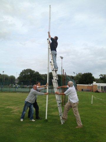 With the help of a few out of towners the top section of the mast has now been repaired and is ready to fly the flag again.