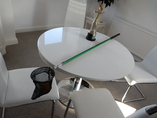 This gizmo will recover any balls (reckless enough to have jumped our new ball stops) from the ditch. There is an extending mechanism for those hard to get at places.