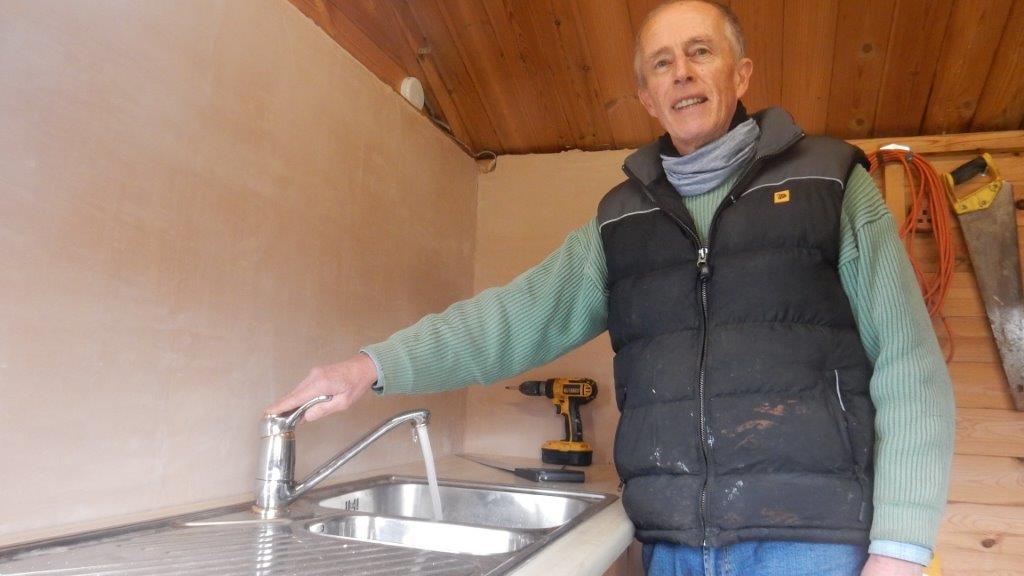 Philip runs the first water at the sink opening ceremony.Yes, we have splashed out and put a sink in the Croquet shed. Since the picture was taken the wall has been painted and tiled. The hoops are currently off site being painted. Several mallets are also off site having the grips replaced.