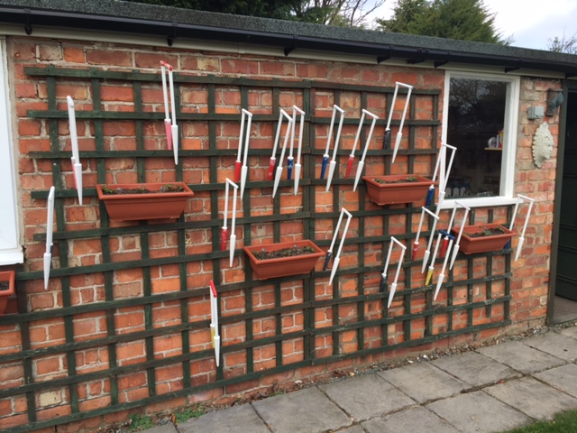 The picture shows Ian’s garden wall sporting the new hoop plants!
