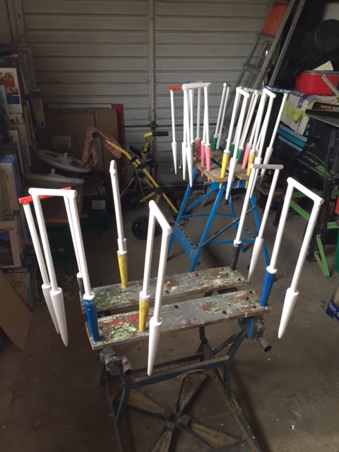 Team one started at 11am at Ian’s garage and had 36 hoops and 12 ball carriers painted by 12.45!