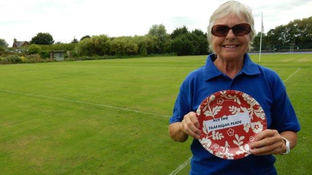 Jude was unbeaten.Joint second place was Cyd and Freda with 3/4 but the worthy winner ws Jude with 4/4 scoring the winning hoop with a reverse jump at hoop 8. The actual trophy was on holiday in Spain so this (rather nice paper plate) had to do, for now.