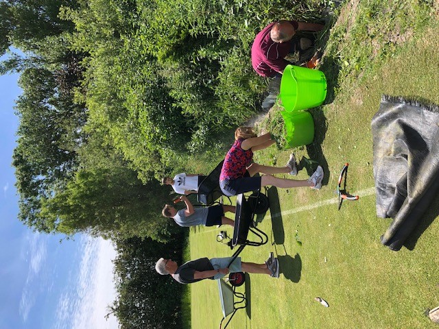 An extra yard has been found on the West boundry of court 5 and is being cleared back. We should be able to use this to move the court away from the Grass Tennis area a little. Work continues with our enthusiastic volunteers.