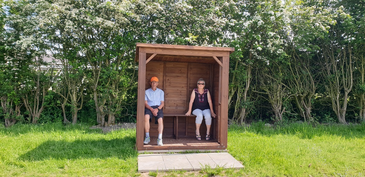 Tom Bradshaw and his children, Tabatha, Viola and Rufus, came to open the Gimme today. Each cut one ribbon of primary colours, we have left the ribbons in place. Tom made a speech thanking the club for using the legacy to such good effect. Each of them planted a special wild flower in 'Martin's Meadow'. The details of the meadow and the plants and grasses growing in it can be seen in an illustrated book that is in the Croquet Shed. Best friends John 'Lordy' Lord and Tim & Hazel Batho also attended.