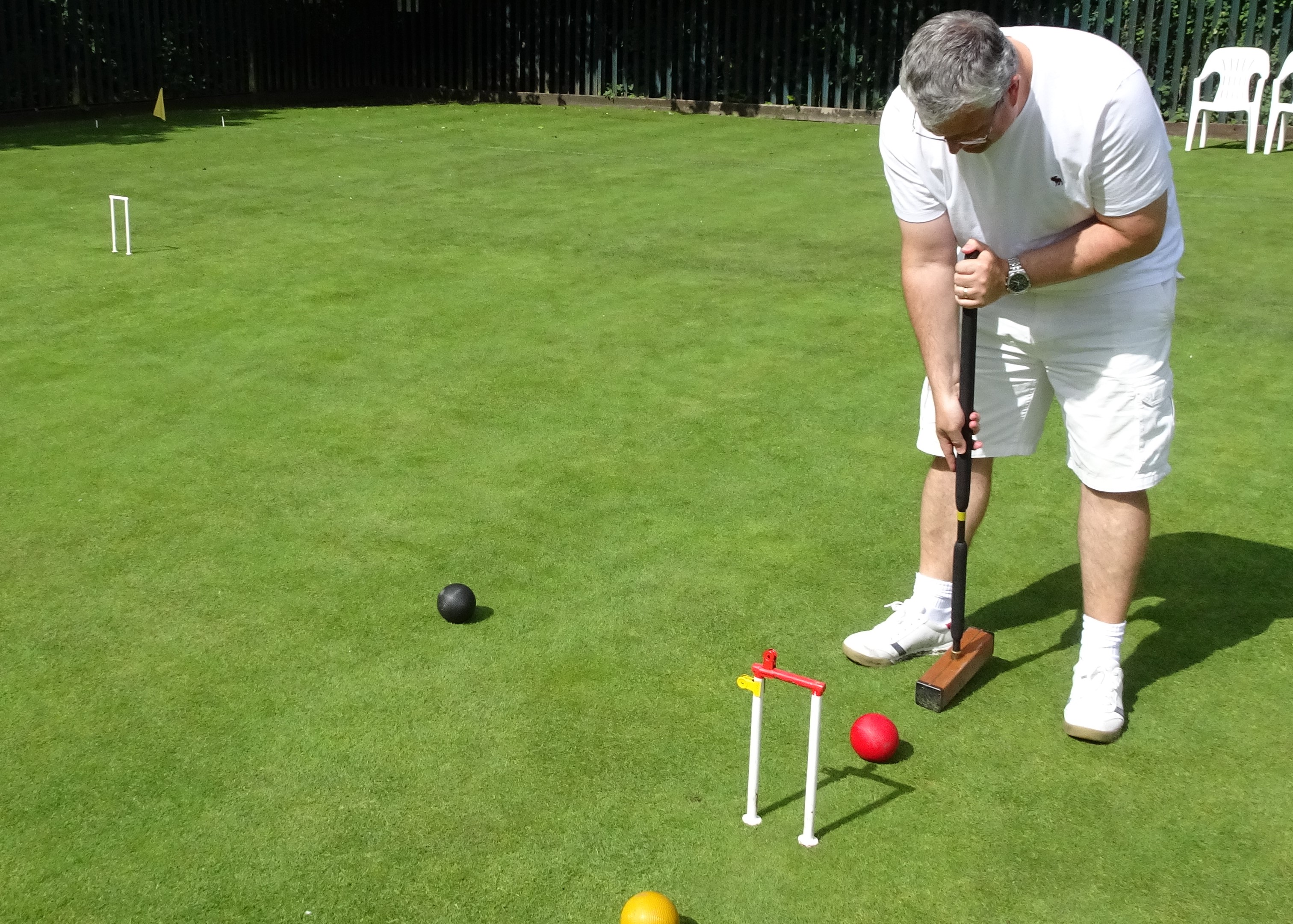 The coaching arranged on Thursdays at Fylde lead by Liz Wilson and Paul Rigge was instrumental in the success of Neil Adams from Westmorland, who emphatically won the handicap and the level C, only losing one of his games over the four days and gaining his Croquet Association Bronze and Silver badges.