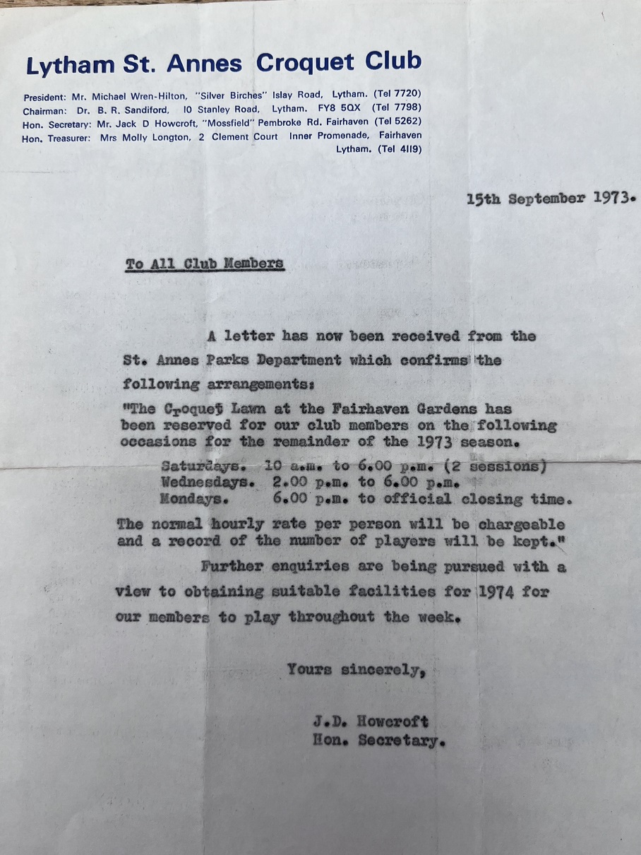 Alison came across some papers when clearing out a house. Southport has an internal A/C trophy named after Mr Sandiford. More research is being done!