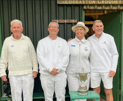 The Team of Phil Snowden, Andrew Webb, Betty Bates and Barry Broughton headed off early Saturday morning to Tyneside Croquet Club. After the long drive to the North East and navigating around the beautiful park that Tyneside Croquet Club is situated, we arrived. The sun was shining and after receiving a warm welcome and drinks from the Tyneside team the matches were set.