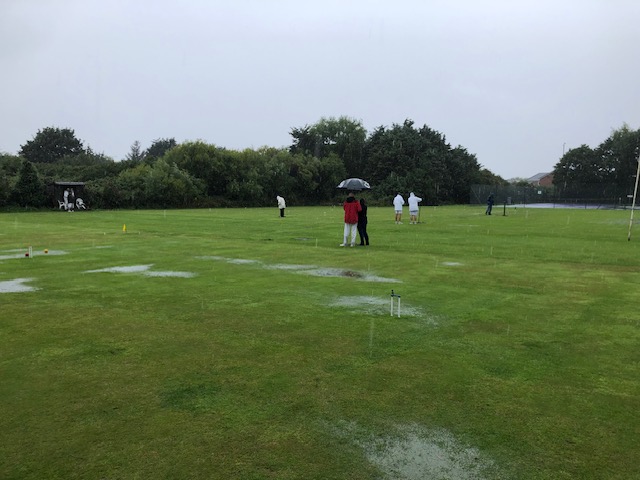 After thirty six hours of rain and an overnight storm, Lorna Ndawarda made an inspection at 7:30 am finding court 5 playable and court 1 slightly puddled but draining quickly. Even with continuous drizzle, the courts held up until a torrential downpour flooded court 1 bringing both games to a halt. These games were transferred to court five as space became available. This lengthened the day for all concerned. It was a remarkable effort from everyone to battle on while the result was open in the miserable weather.