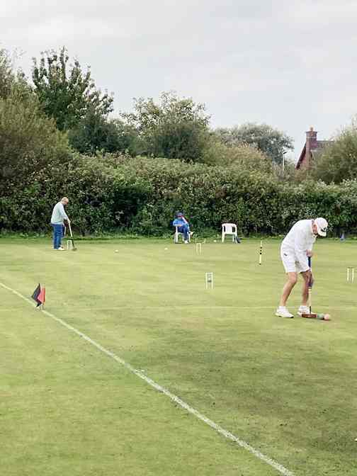 Ian and Stewart lost their doubles match to a strong pairing from the Welsh side which included a “bandit”! Our final matches against Southport were very close, Alison should have beaten Tony Thomas as she had plenty of chances to finish and the doubles match was lost in the final minutes with the last hoop scored by Southport in the final seconds.