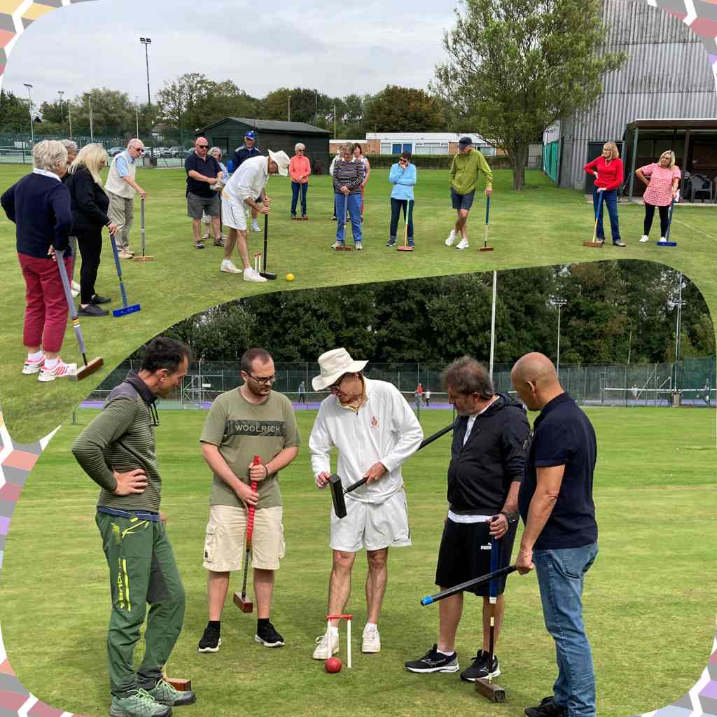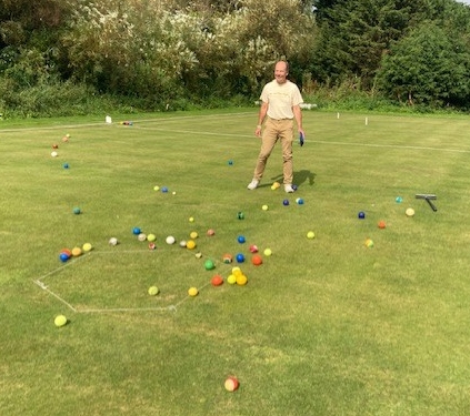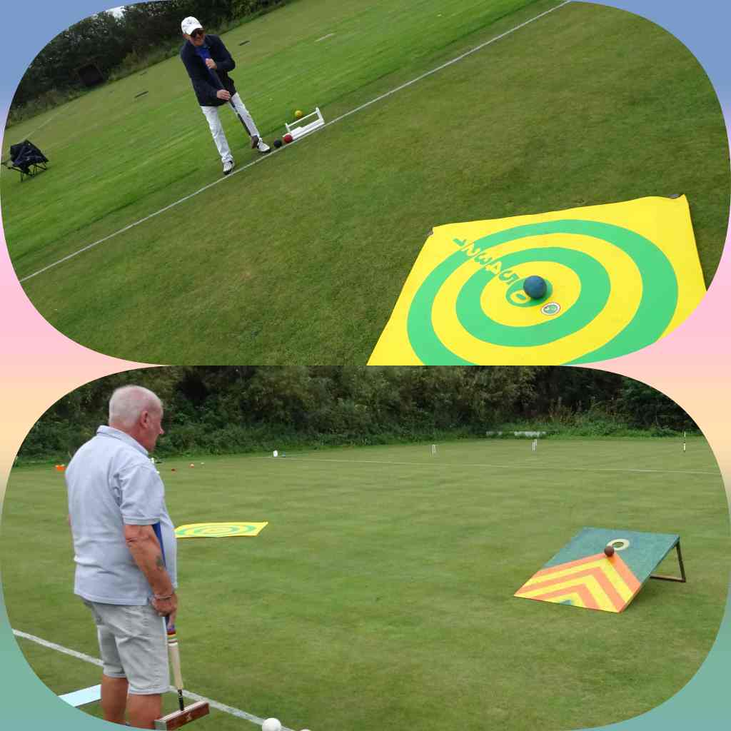 Catherine writes: Level Play Golf - Philip and Catherine. The eventual score line of one Win doesn’t tell the whole story!! There were a lot of successful clearances and knocking balls back out of hoops at distance but simple hoop scoring let us down! Our opponents, on the other hand, seemed to share the knack of placing their first ball right in front of the next hoop.