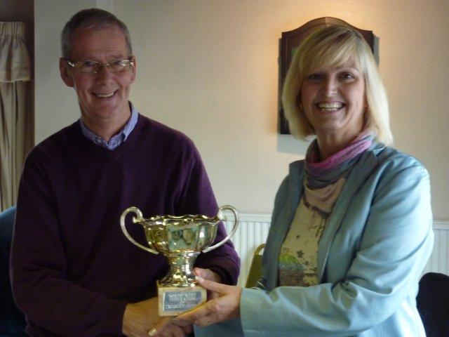 Betty accepts the trophy from Federation Chairman David Barett