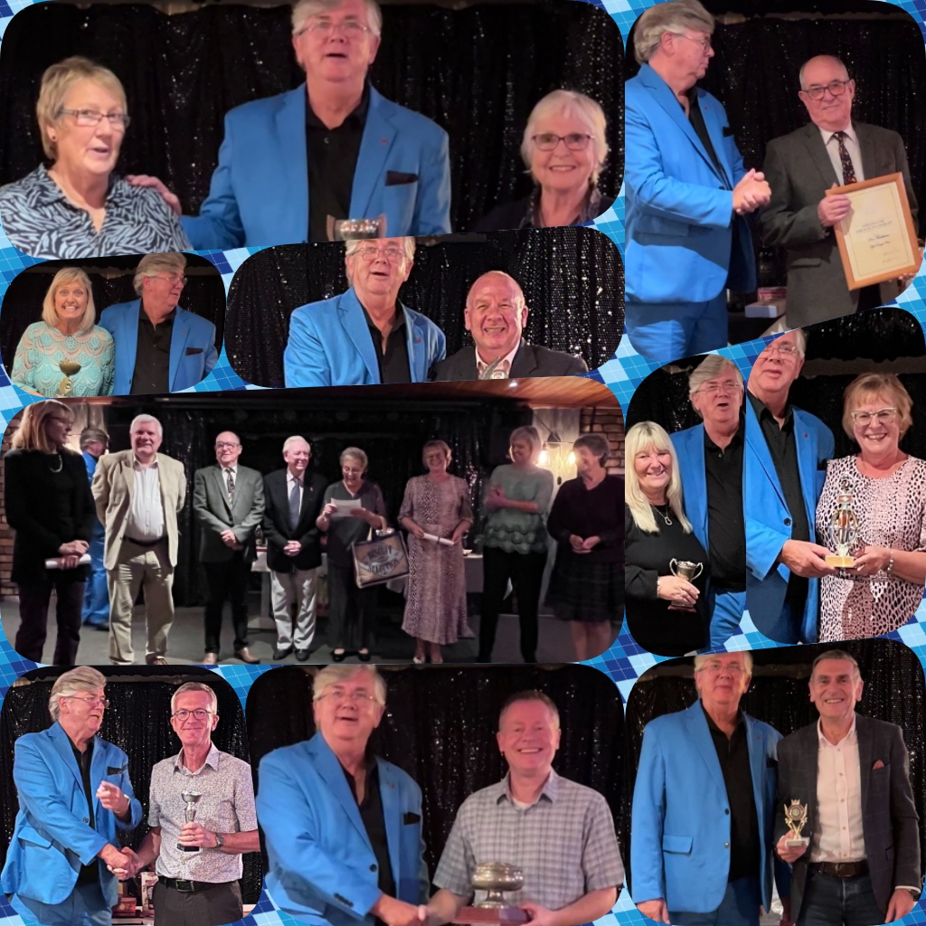A lovely montage of the runners and riders at our Annual Dinner. Centre stage are 5 of our 15 new members this year. Surrounding from top right working clockwise Fylde’s very own band “Primary Colours”, Earning their blues for first time representing Fylde competitively – Aileen Watt and Alison Broughton and presenting the awards to the Fylde Internal Competition winners founder member Geoffrey Lipshaw with Maurice Myers ( Trafalgar Plate Handicap Golf), Ian Theakstone (Green Trophy Handicap AC), Jan Smith and Cyd Harbottle (Tower Trophy Handicap Golf Doubles), Liz Wilson (Rose Bowl AC Advanced) and Cyd Harbottle (Midgeland Trophy Handicap Golf). We had a wonderful night, netting £285 for the club. A well organised event (thank you Cyd, Jan and Liz) with good food and good company.